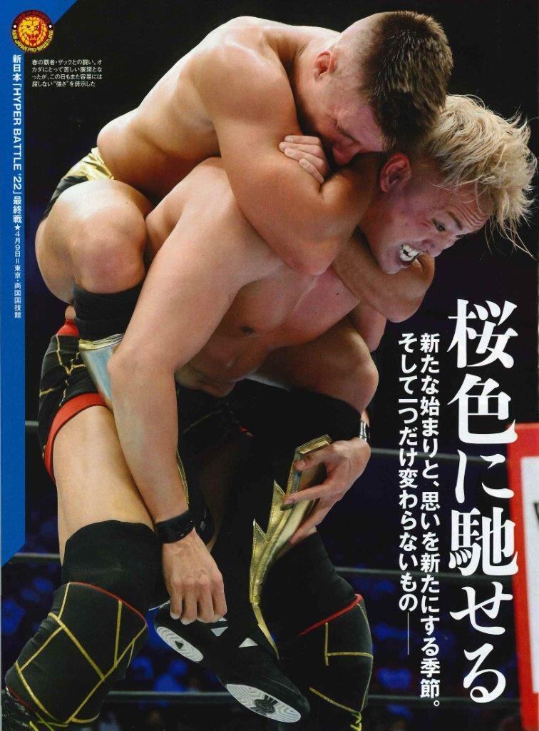 今週号の表紙は新日本・両国決戦でザック・セイバーJrを破りIWGP世界ヘビーV3に成功したオカダ・カズチカです。春の恒例となっている新日本の両国決戦はほかにIWGPジュニア、タッグ、ジュニアタッグ、NEVER、KOPWと注目試合満載。5月のPayPayドームへ向けて流れも加速した大会の模様を巻頭カラーから詳報します。