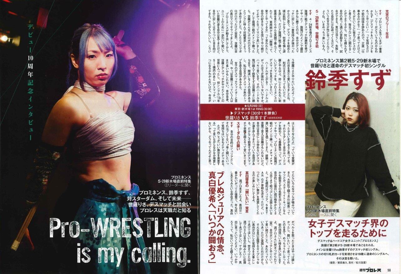 スターダムではSWA王座奪取で団体内グランドスラム達成の岩谷麻優に記念インタビュー。過去に戴冠した王座についての自己採点つきであらためてベルトへの思いを語ります。スターダムの試合は上田大会のワンダー王座前哨戦などをリポート。企画ものとしては三冠王者の宮原健斗、デビュー1周年の荒井優希のインタビューも必読。