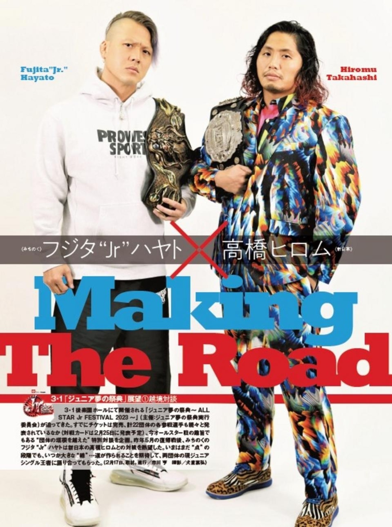 22団体から選手が参戦するジュニア夢の祭典3・1後楽園へ向けて高橋ヒロムとフジタ“Jr”ハヤトのスペシャル対談を企画。IWGPジュニア王者と東北ジュニア王者の人気選手同士による対談は必読。新日本関連ではサンノゼでおこなわれたIWGP世界戦・オカダvs棚橋ほか注目試合を中心にリポート。