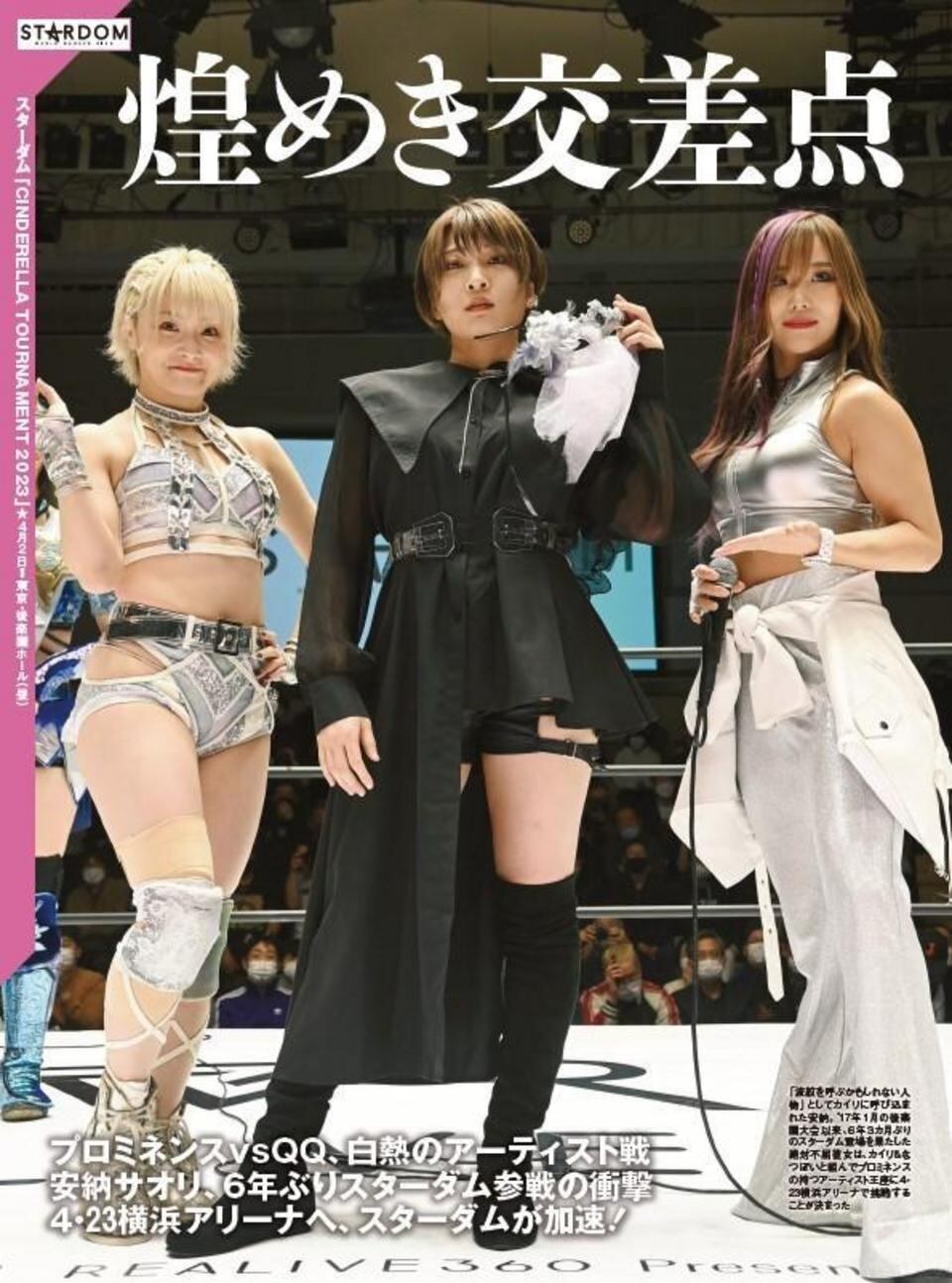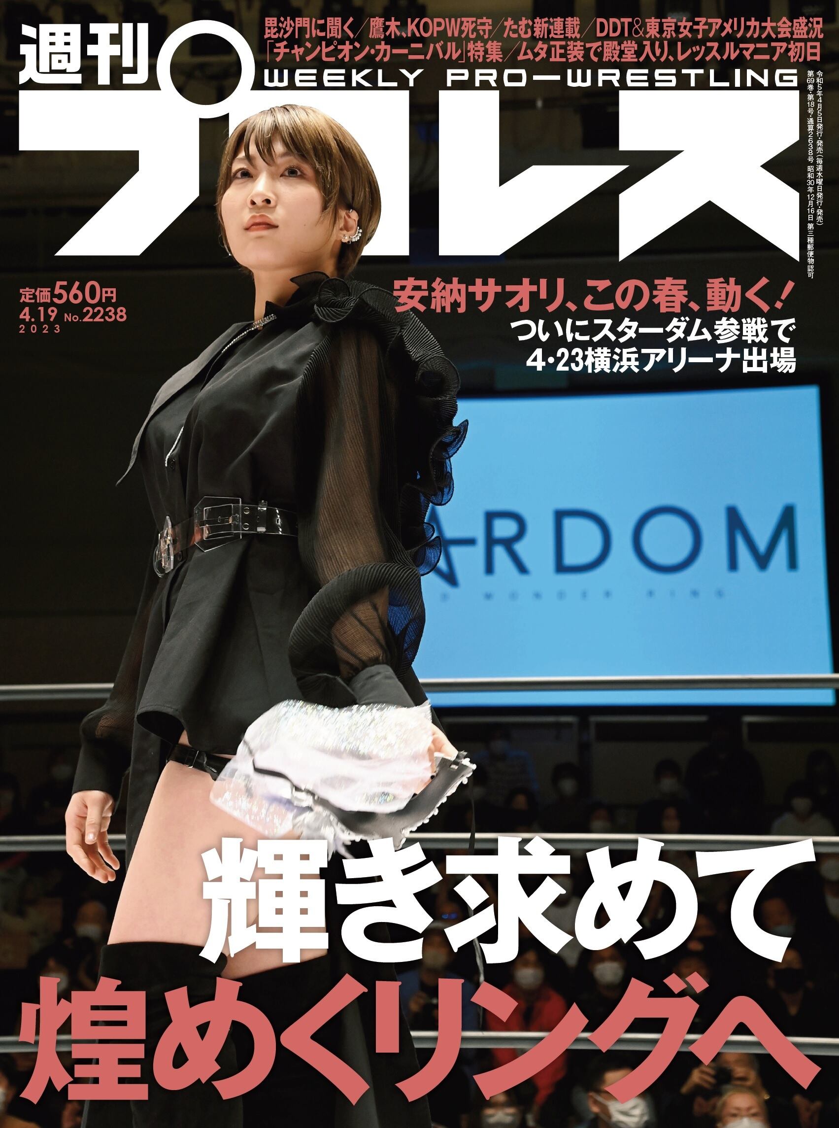 今週号の表紙はついにスターダム参戦を表明した安納サオリです。KAIRIが予告していた「波紋を呼ぶかもしれない人物」として後楽園大会のメイン後リングに上がった安納は巻末言で本人が今回の決断に至った理由も語っています。同大会では「シンデレラ・トーナメント」ベスト4も出揃うなどほかにも注目試合中心にリポート。