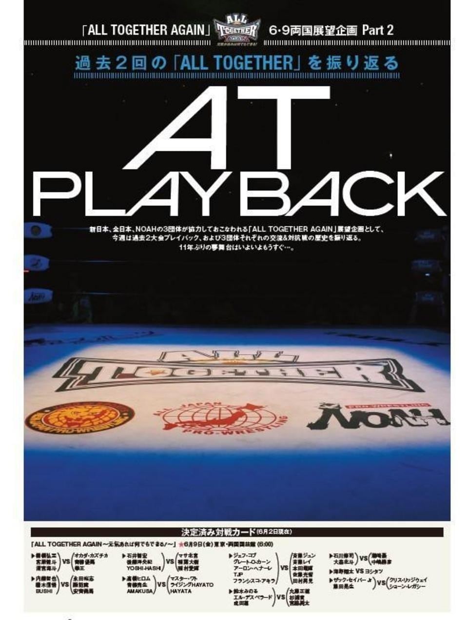 企画ものとしては先週に続いて「ALL TOGETHER」展望PART2として過去2大会を振り返り&新日本、全日本、NOAH3団体のそれぞれの対抗戦の歴史を紐解きます。また裏ATとなるFREEDOMS6・9新木場大会も佐々木貴&アブドーラ小林対談など展望企画あり。