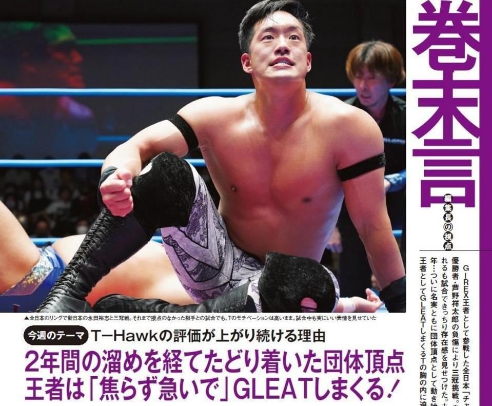 今週号の表紙は新日本、上半期最後のビッグマッチ大阪城ホール大会で凱旋即IWGP世界王座に挑戦した辻陽太です。試合に敗れ王座奪取はならなかったものの、王者のSANADA相手に堂々としたファイトでインパクトを残した辻の話もまじえてリポート。ほかにもタイトルマッチやG1出場選手発表など注目大会を巻頭から詳報します。