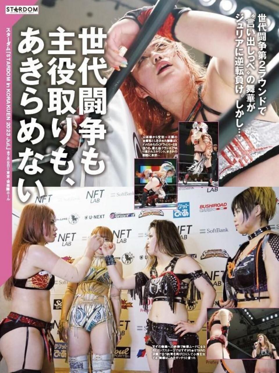 今週号の表紙は新日本が「令和闘魂三銃士」と名付けた3人…海野翔太、成田蓮、辻陽太です。「G1 CLIMAX」開幕直前に注目3選手を単独直撃。また今年は前人未踏の3連覇がかかるオカダ・カズチカにも話を聞いてます。付録として毎年恒例の「G1観戦ガイドブック」がBOOK in BOOKとしてついているので開幕前に必読。
