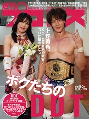 今週号の表紙はDDT両国で悲願のKO-D無差別王座初戴冠した上野勇希と引退試合を終えた赤井沙希です。4年ぶりのDDT秋の両国ビッグマッチは新日本から高橋ヒロム、AEWからクリス・ジェリコが参戦するなど超ボリューム。巻頭から詳報するほか巻末言では「世界一のレスラー」を目指してDDT&AEW2団体所属で活躍する竹下幸之介をクローズアップ。